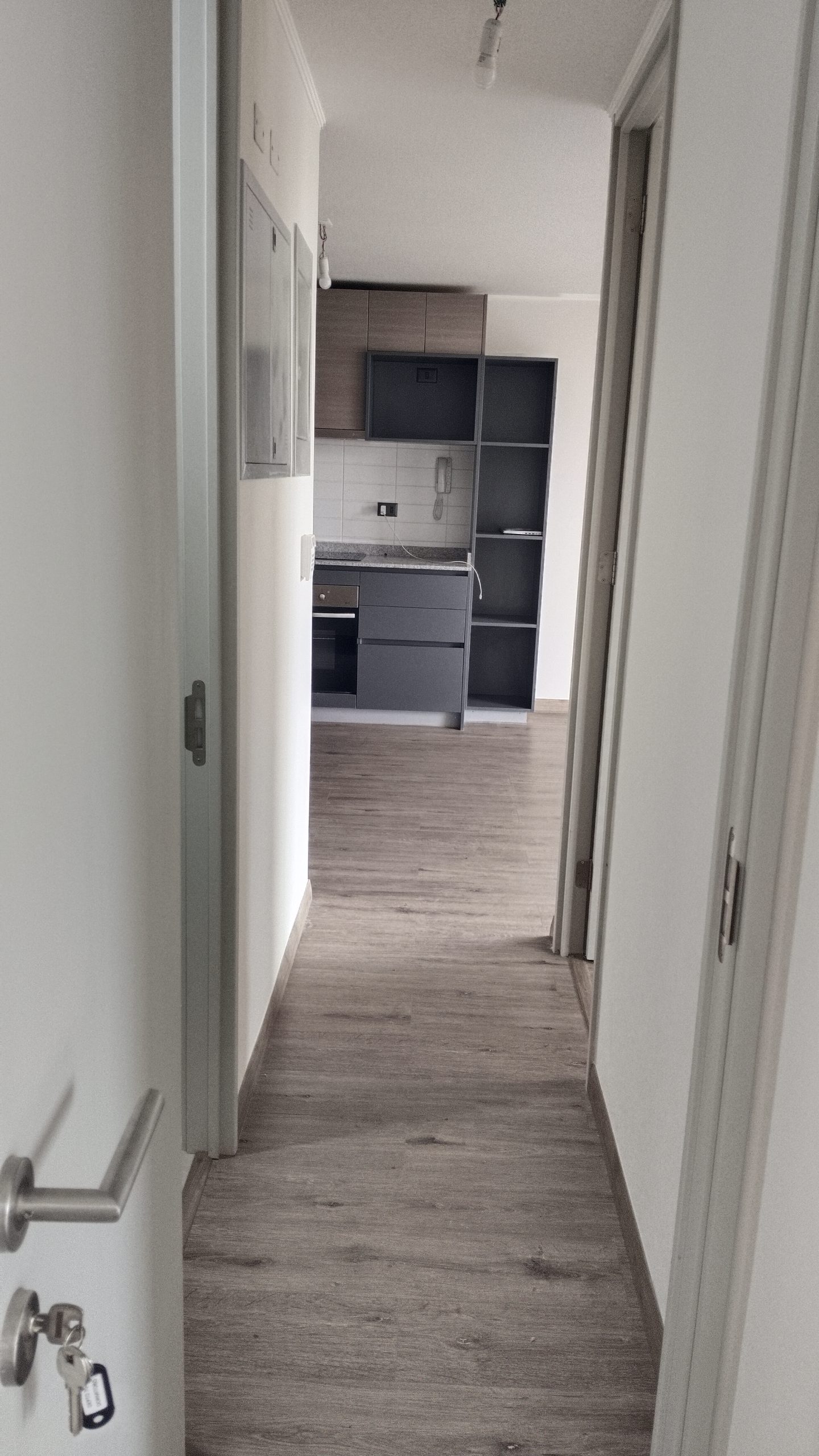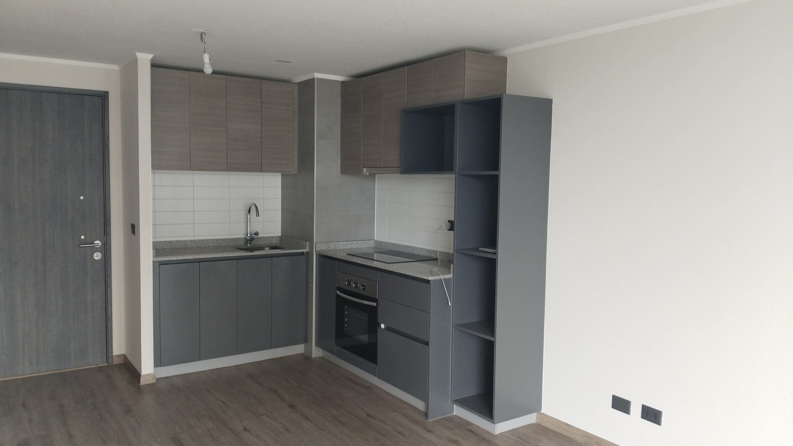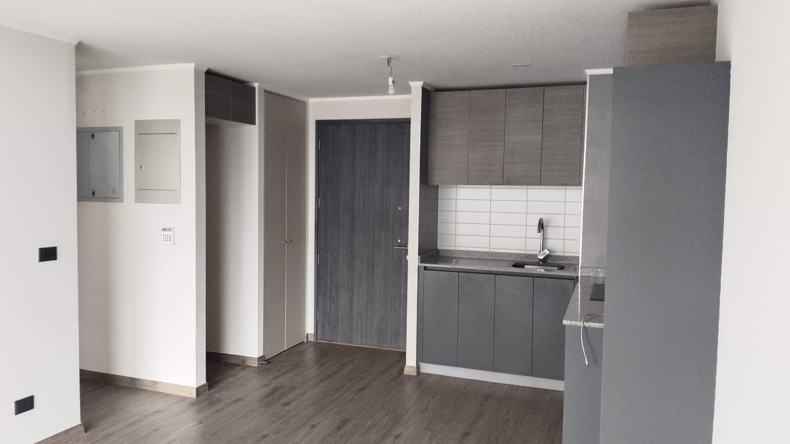 Departamento nuevo de dos dormitorios dos baños principal en suite living comedor instalación de lavadora cocina amoblada y equipada balcón terraza closet walking close estacionamiento orientación Norte ubicado en Santa Cristina 3055 comuna de macul